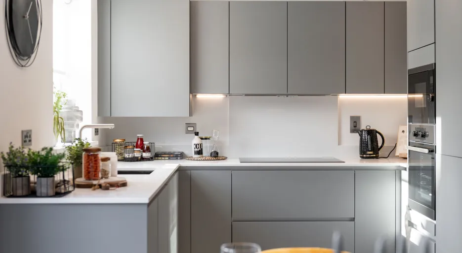- Caesarstone worktops with matching upstand and splashback behind hob